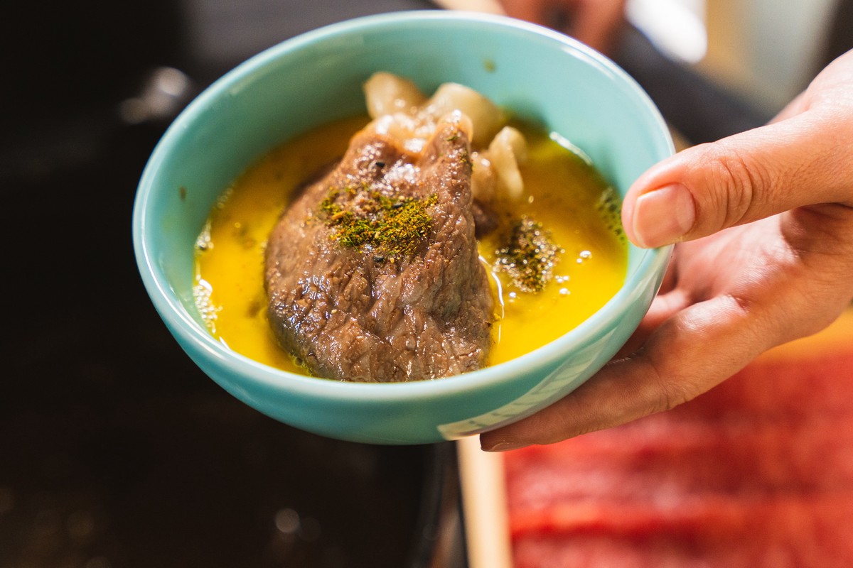 Sukiyaki Kappo Kitsune — Transforming the Sukiyaki Experience. Kitsune is a branch of the celebrated restaurant "sio" in Yoyogi-Uehara, Tokyo. Under the meticulous direction of Executive Chef Shusaku Toba, we offer a "Sukiyaki Kappo" experience that transcends traditional flavors to deliver true culinary emotion. Guests can enjoy full sukiyaki courses prepared right before their eyes or choose from our refined set meal (Gozen) menus that propose innovative ways to enjoy this classic dish.