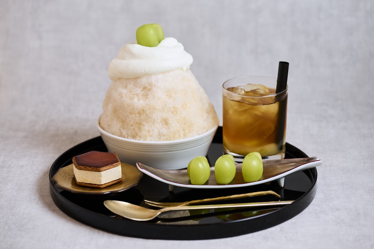 ・シャインマスカットかき氷 ・シャインマスカット ・レーズンバターサンド ・お好きなドリンク ※ 果肉たっぷりのシャインマスカットフレーバーティー変更+600円 ※ 抹茶ラテ変更+400円 ※ 変更は当日ご注文ください