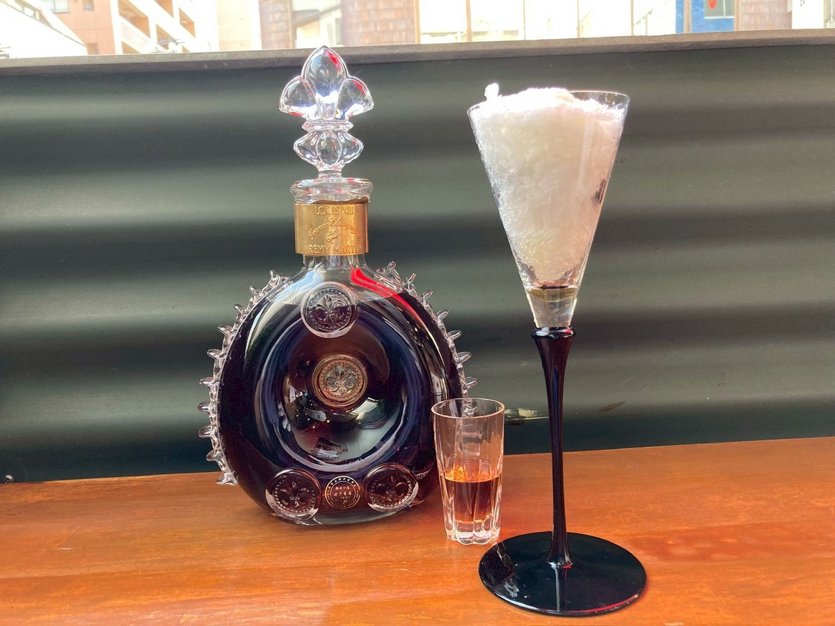 プレミアムで最高級なブランデーのかき氷です。ルイ13世の贅沢な香りと味わいを生かすように、アガベシロップをベースに、中にはシルバーテキーラに漬けたセミドライプルーン、別添えにルイ13世をお付けします。ルイ13世を1スプーンずつ掛けながら、アガベシロップとプルーンとの相性をお楽しみ下さい。 (お飲み物もセットです)
