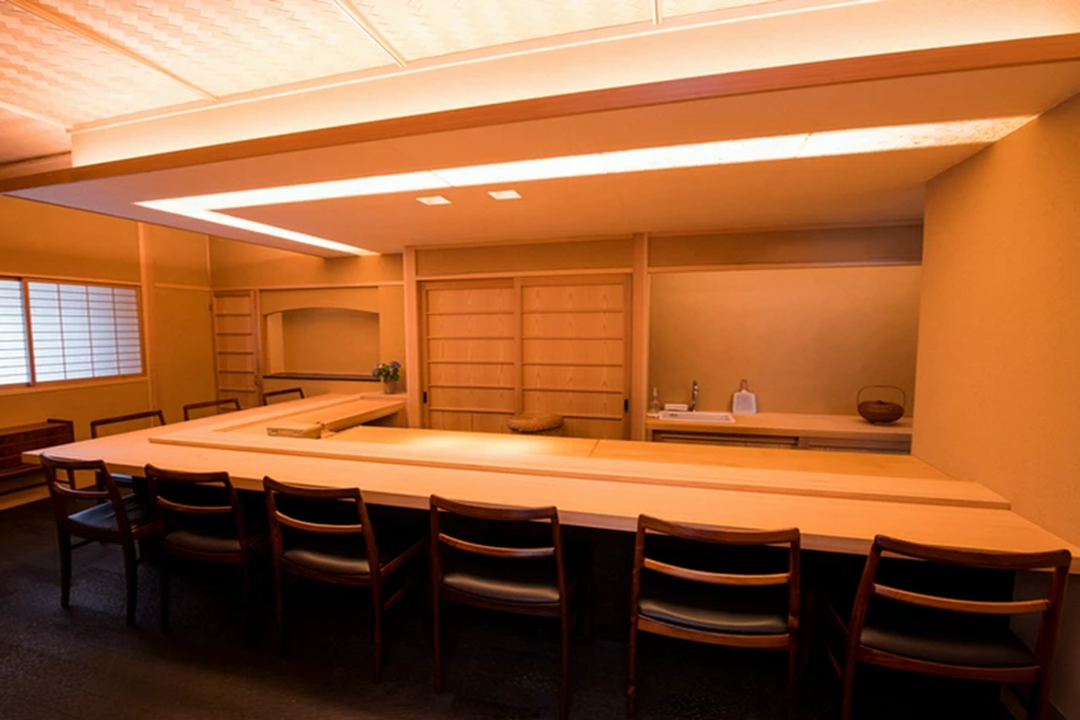규슈 각지에서 쓰키지까지, 직송으로 들어오는 신선도 최상의 해산물을 마음껏 즐기실 수 있습니다. 10년 동안 항아리에서 숙성시킨 ‘적초(赤酢)’로 만든 초밥 밥은 향이 깊고 풍미가 풍부합니다. 제철 재료와 어우러져 최고의 하모니를 이룹니다. 또한 술에 어울리는 안주도 준비되어 있으니, 취향에 맞는 술과 함께 맛보시기 바랍니다. 매장은 불필요한 장식을 배제한 단정하고 고요한 분위기로 가득합니다. 품격 있는 L자형 카운터 9석은, 손님 한 분 한 분과 진심으로 마주하기 위해 2015년에 새롭게 단장되었습니다. 오크목으로 만든 바닥은 장인의 손으로 하나하나 정성스럽게 새겨졌으며, 천장은 삼나무를 정교하게 이어 붙여 완성되었습니다. 차분하면서도 기품이 감도는 다실 같은 공간에서, 다음 한 점의 초밥을 기대하며 마음이 설렙니다.