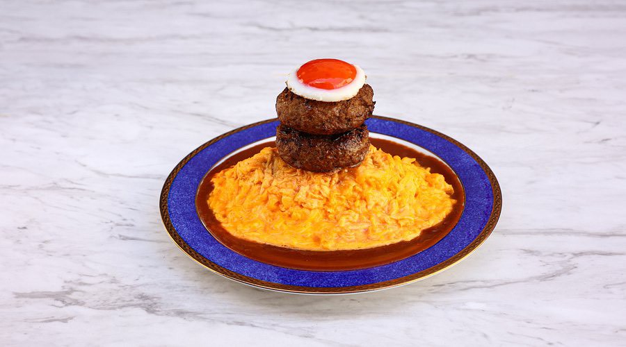 Premium Omelet Rice with Melting Camembert & Signature Hamburg Steak, One Drink (Iced Coffee, Iced Tea, Orange Juice, or Sanpin-cha), and Basque Cheesecake (Half-size)